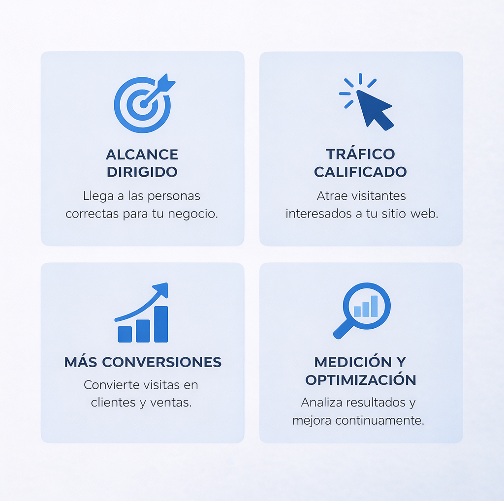 Nuestras soluciones se adaptan según la etapa, necesidades y objetivos de cada negocio. Antes de implementar cualquier estrategia, analizamos el contexto comercial, el proceso de captación actual y las oportunidades de mejora, con el fin de definir un enfoque alineado a resultados reales. Esto nos permite desarrollar un sistema adecuado para cada empresa, en lugar de aplicar soluciones genéricas.